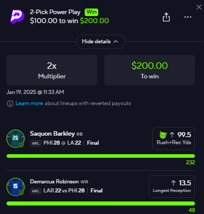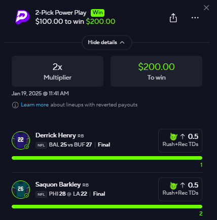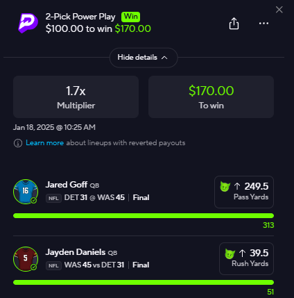 Best line: (PrizePicks) | USE CODE: NFLARMY | find a book to straight bet