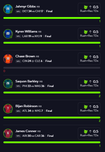 👇K. Williams: O 0.5 Rush+Rec TDs
