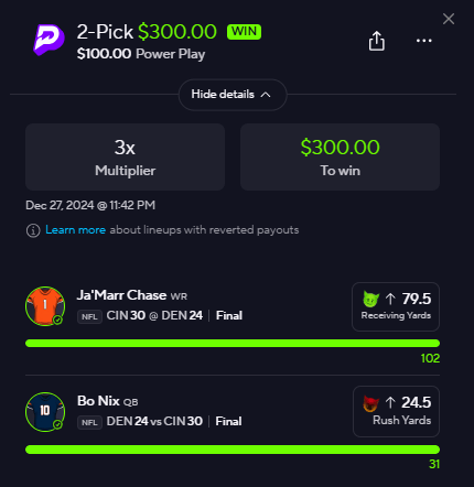 Best Line: (PrizePicks) | USE CODE: NFLARMY | find a book to straight bet