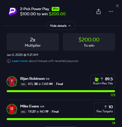 Best line: (PrizePicks) | USE CODE: NFLARMY | find a book to straight bet